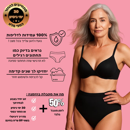 תחתוני ספיגה לנשים (גזרה גבוהה) - מארז 5 יח׳