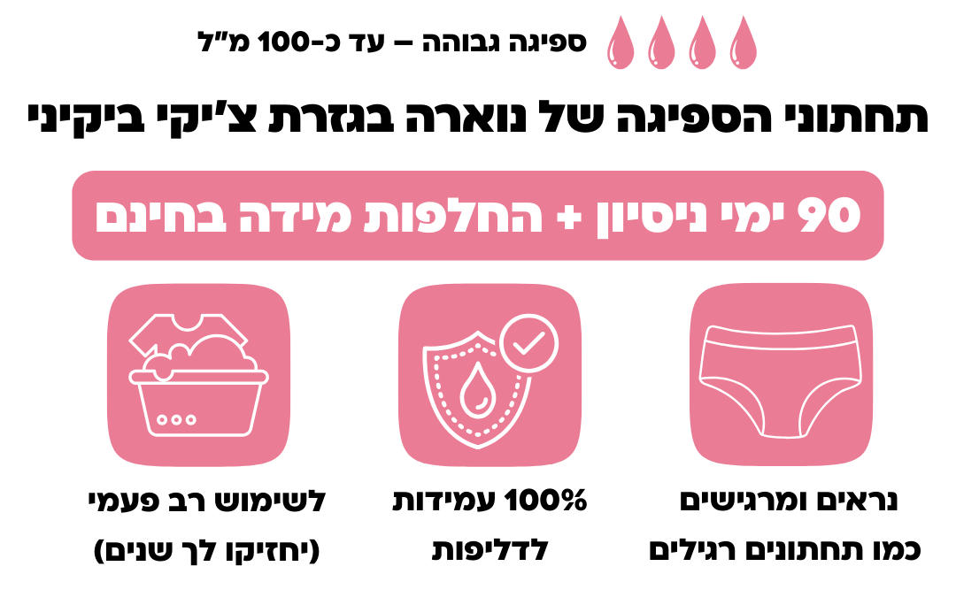 - התחתונים שלנו נראים ומרגישים בדיוק כמו תחתונים רגילים – רק שהם 100% סופגים!
