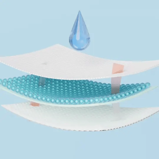 שכבה 2: שכבת הביניים כולאת את הנוזל עמוק בפנים – כדי שלא יחדור לבגדים.