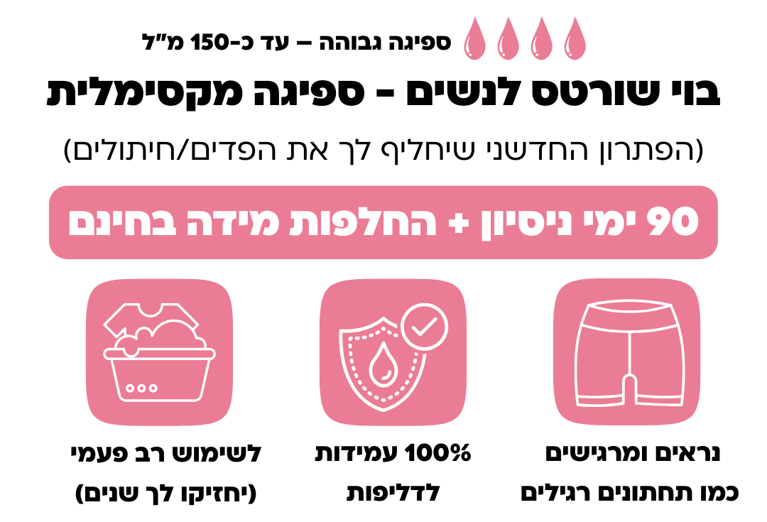 - התחתונים שלנו נראים ומרגישים בדיוק כמו תחתונים רגילים – רק שהם 100% סופגים!