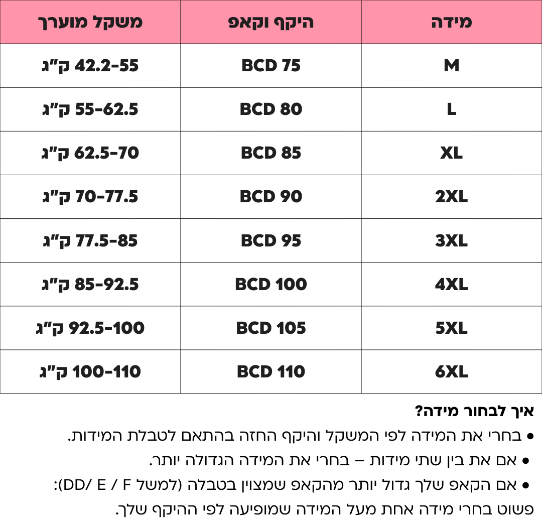 לובשת חזייה מידה 90C תצטרכי מידה 2XL אצלנו.