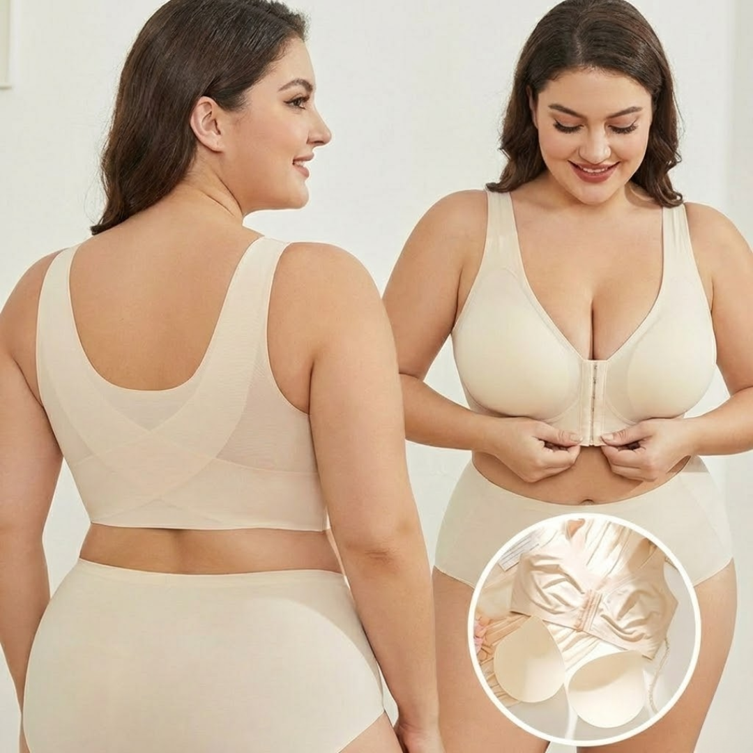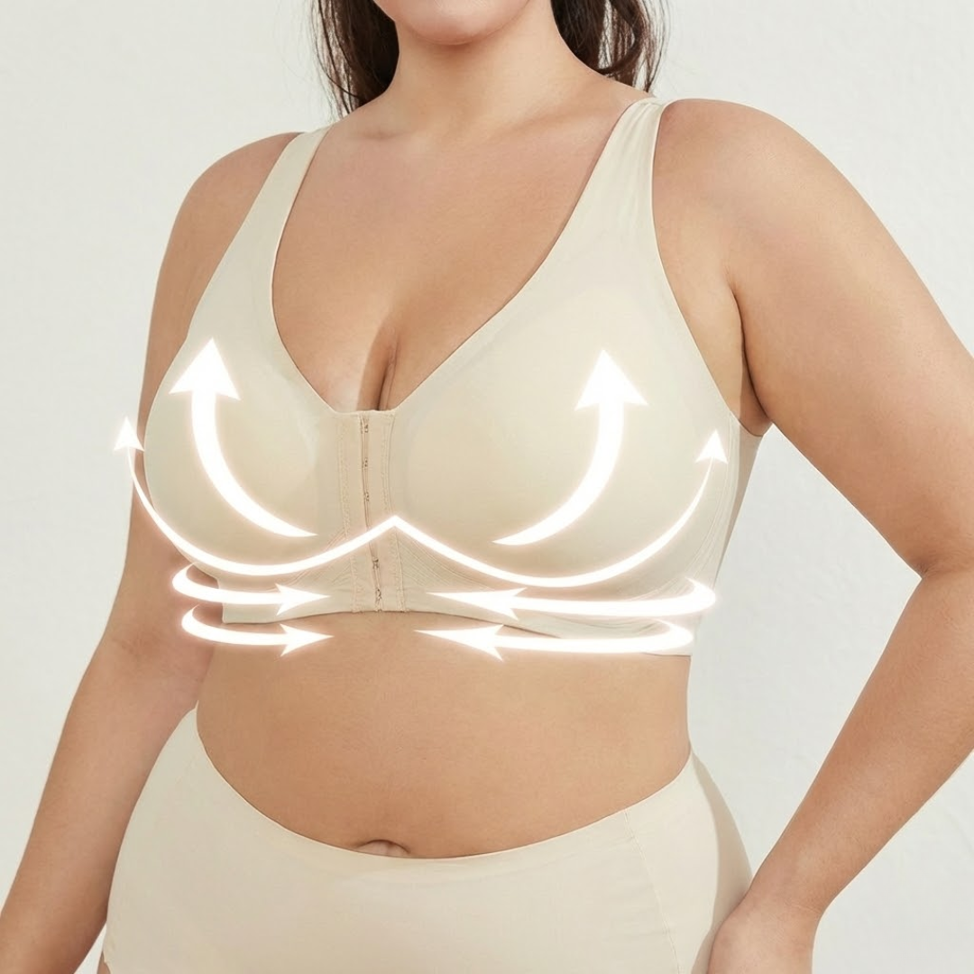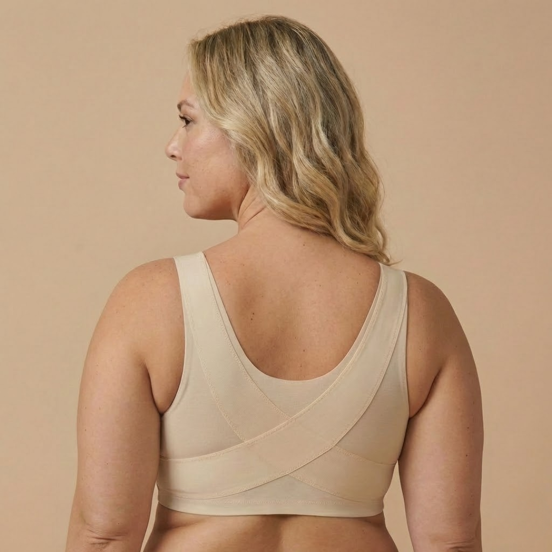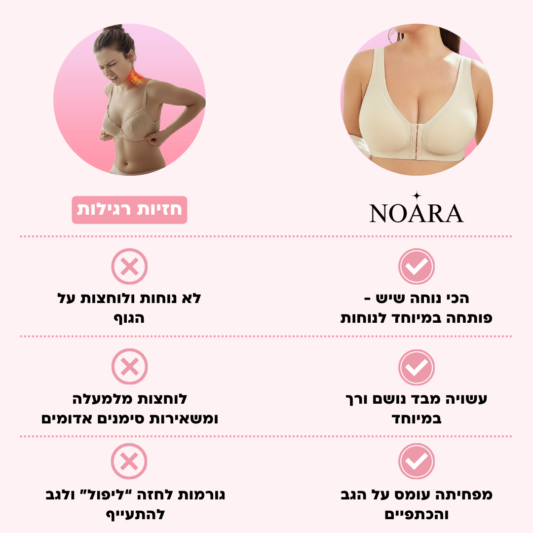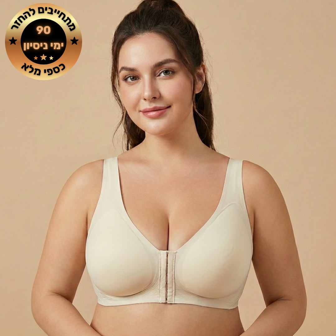 במקום ללחוץ מלמעלה ולשטח את החזה, היא תומכת מהצדדים ומהתחתית, בצורה טבעית שמרימה ומחזירה לגוף שלך את היציבה והאיזון.