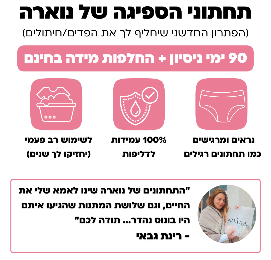 - התחתונים שלנו נראים ומרגישים בדיוק כמו תחתונים רגילים – רק שהם 100% סופגים!
