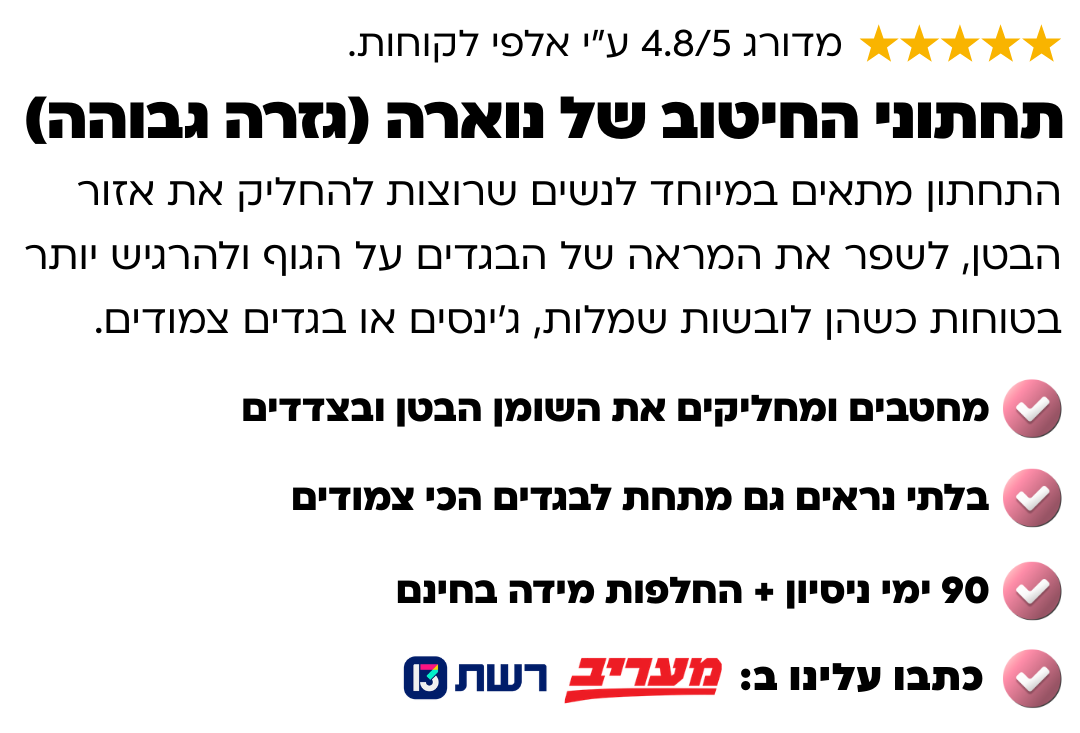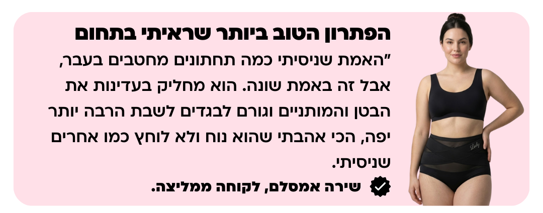 *אלו רק חלק מהמנתונים שאספנו לכם ממחקר שעשינו עם לקוחות שהשתמשו בתחתונים שלנו, מדורג 4.8/5 ע״י אלפי לקוחות.
