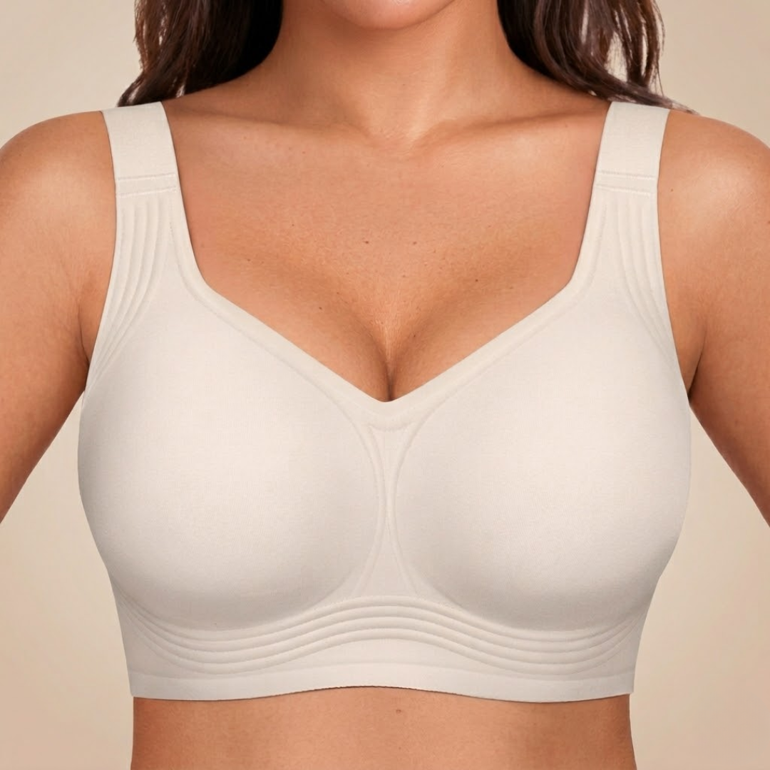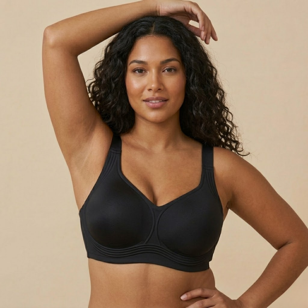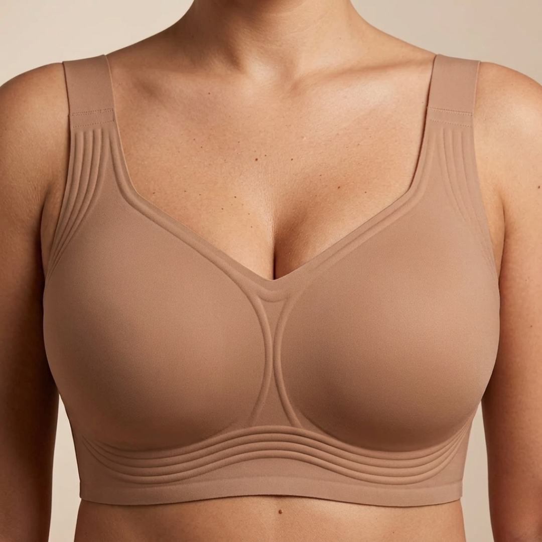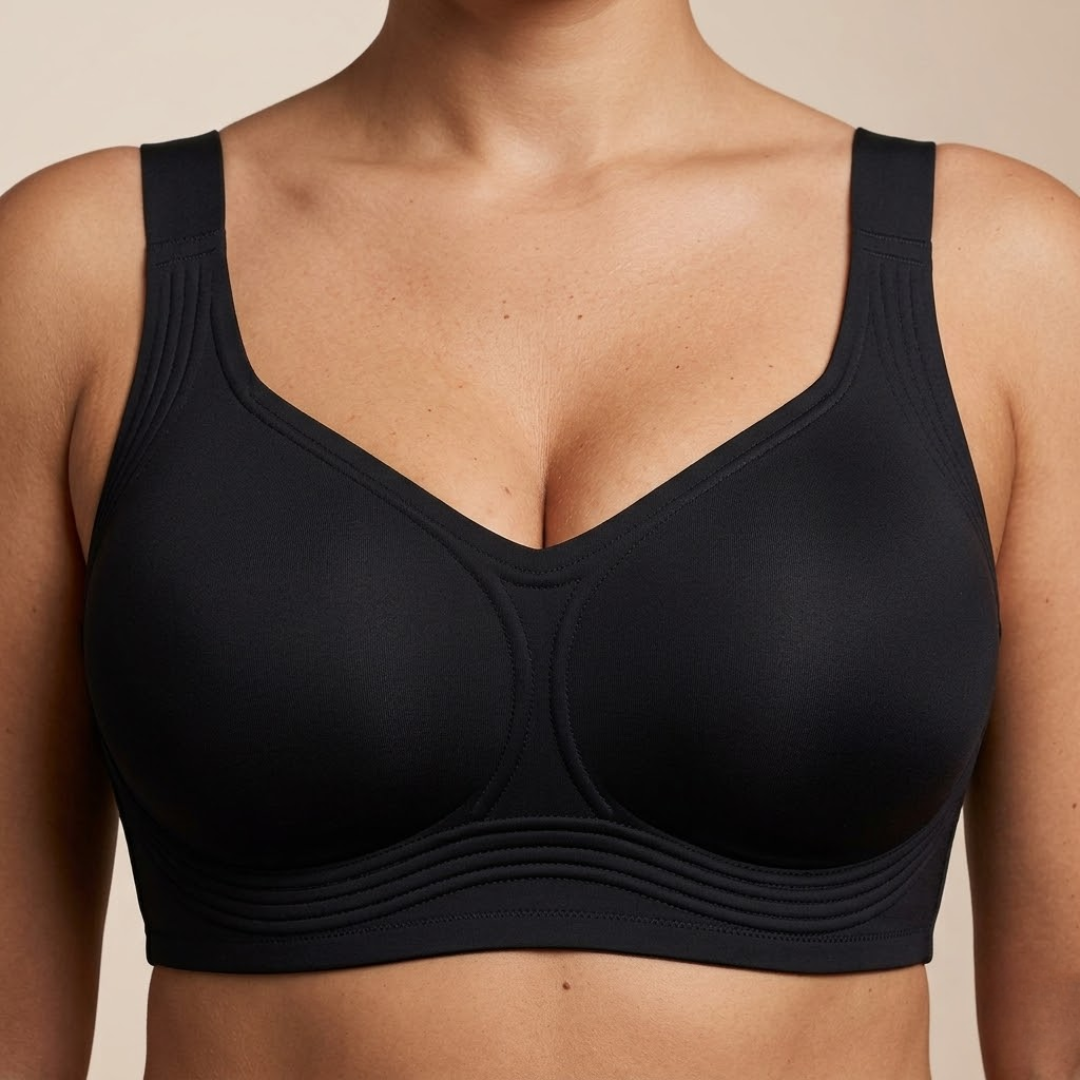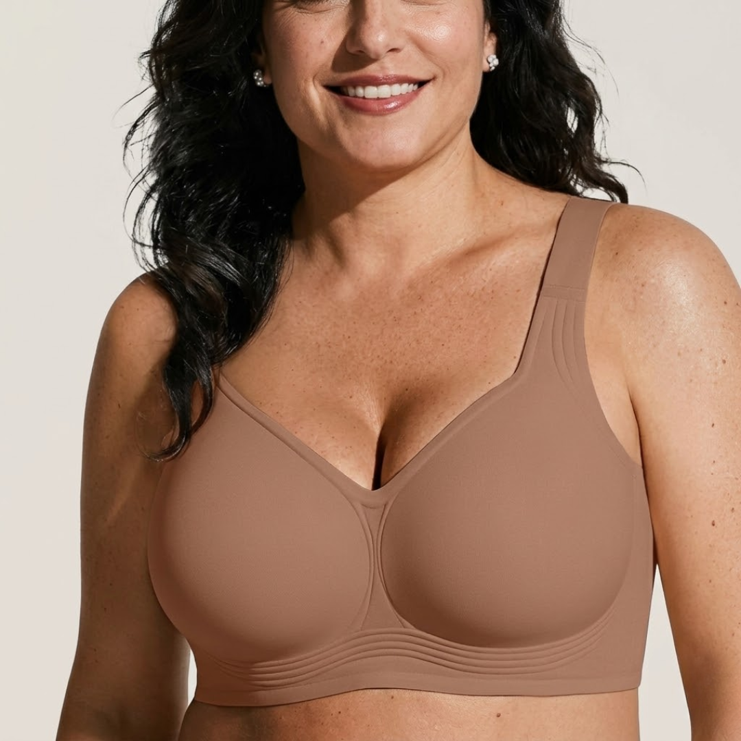 החזייה הזו פותחה בעזרת עיצוב תפירה מהפכני שמבוסס על מחקר שנמשך שנים כדי לפתור אחת ולתמיד את הבעיה של חזיות לוחצות, כואבות ולא נוחות.