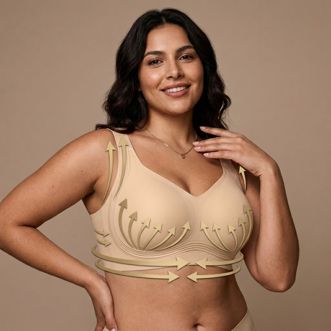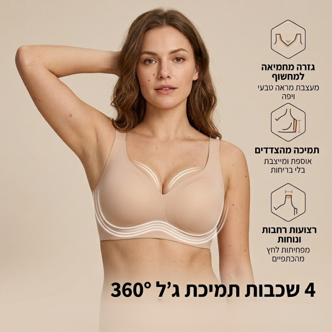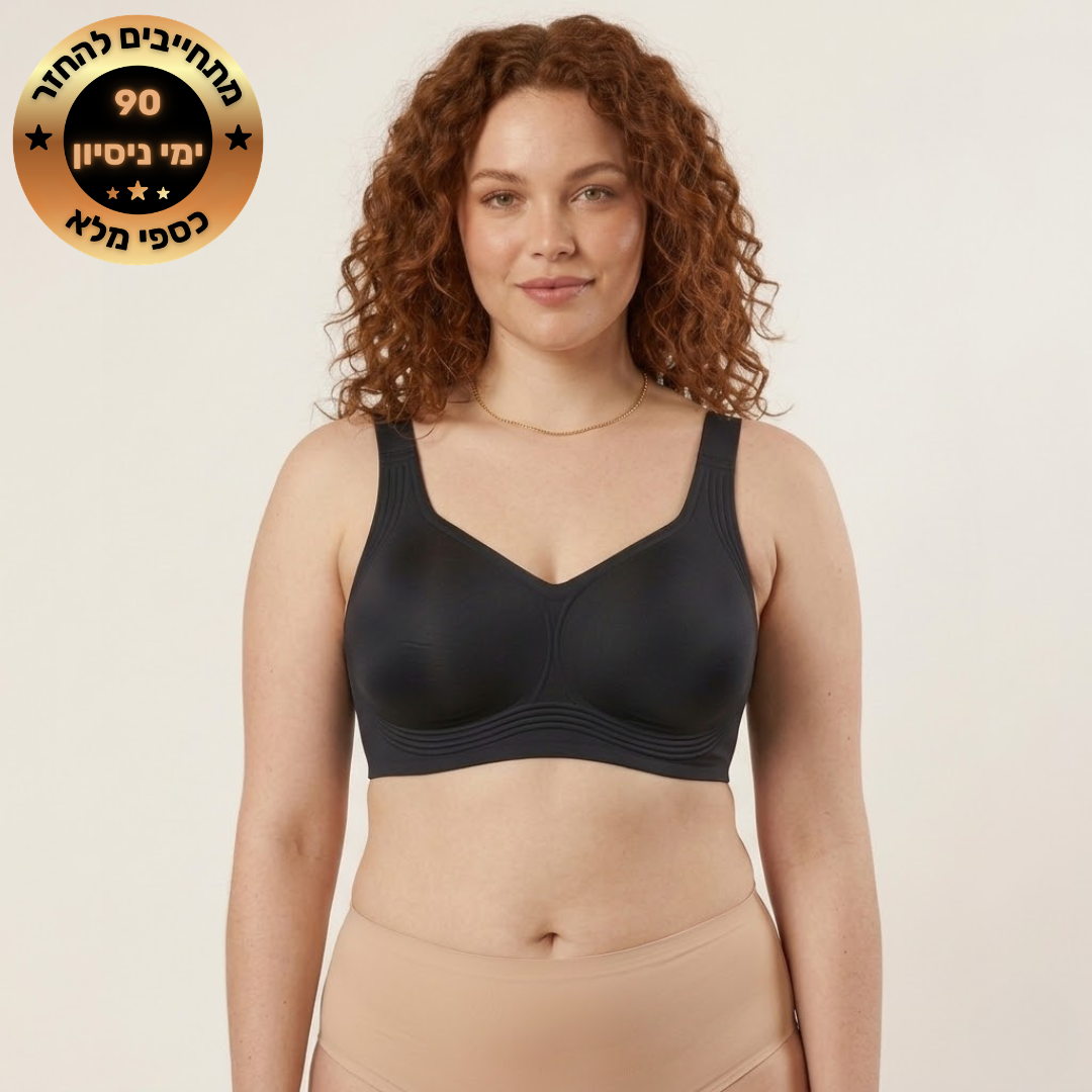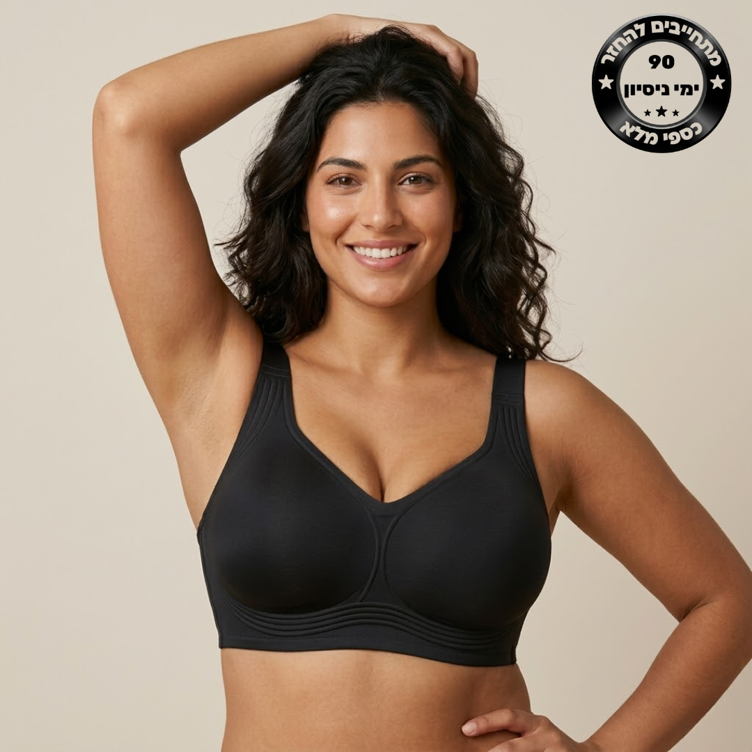 במקום ללחוץ מלמעלה ולשטח את החזה, היא תומכת מהצדדים ומהתחתית, בצורה טבעית שמרימה ומחזירה לגוף שלך את היציבה והאיזון.