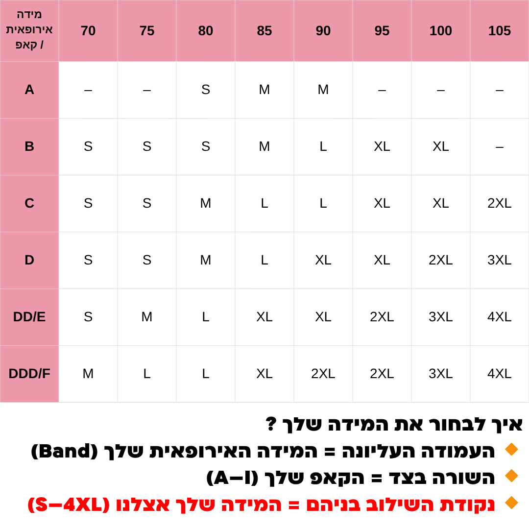 בחרי את אותה מידה של החזייה שאת לובשת כרגע :