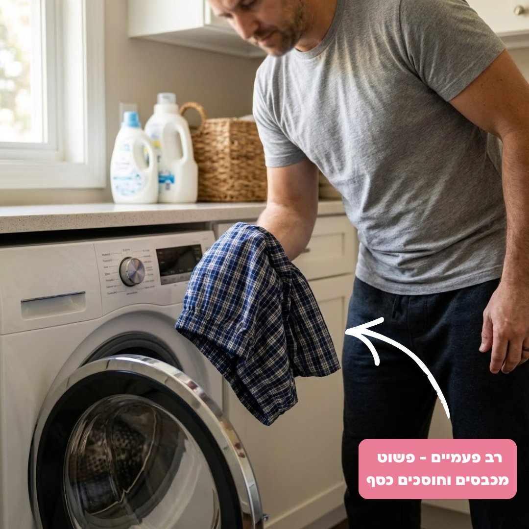 לגבי הכביסה: מומלץ לכבס במכונה עם מים קרים או מים חמימים עם טמפרטורה שלא עולה על 40 מעלות ולתלות לייבוש.