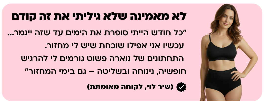 *אלו רק חלק מהמנתונים שאספנו לכם ממחקר שעשינו עם לקוחות שהשתמשו בתחתונים שלנו, מדורג 4.8/5 ע״י אלפי לקוחות.