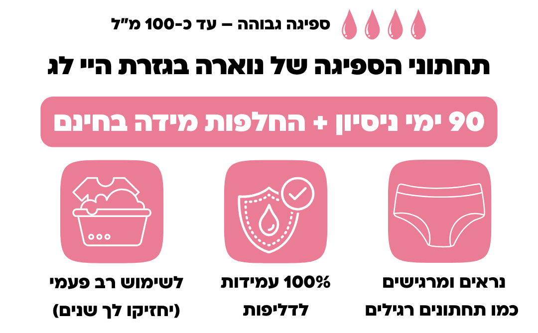התחתונים מושלמים לדליפות שתן בינוניות עד קשות, עם יכולת ספיגה של עד 100 מ״ל.