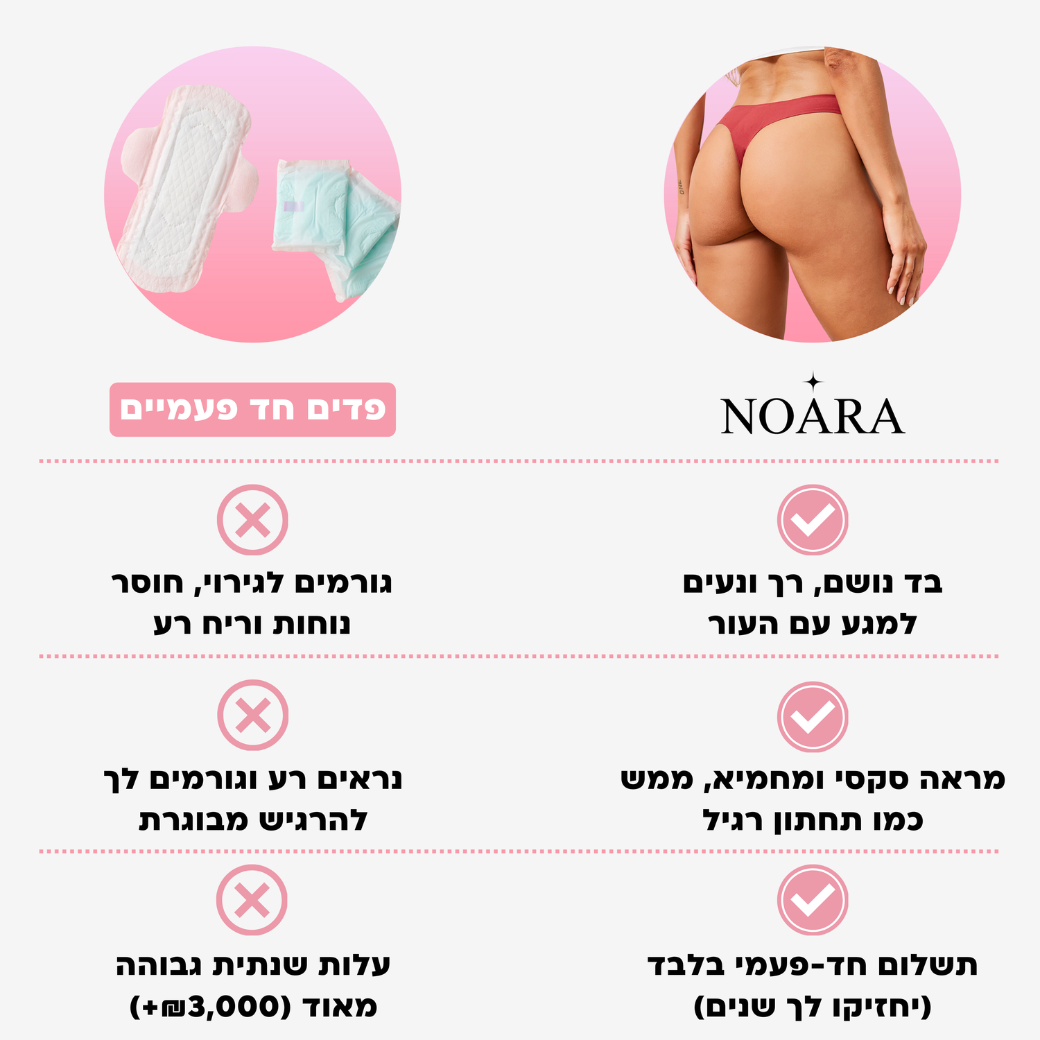 במקום פדים מסורבלים או טמפונים לא נוחים – החוטיני שלנו משלב מערכת ספיגה חכמה ודקה במיוחד, שמעניקה לך נוחות והגנה בימי המחזור שכל אחת חווה.