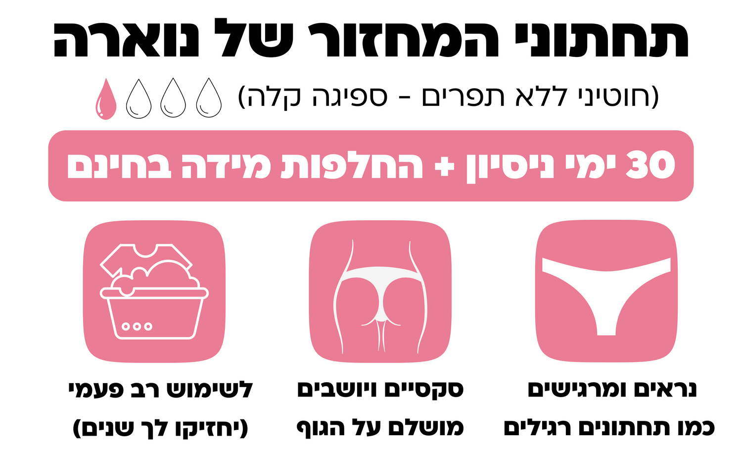 - התחתונים שלנו נראים ומרגישים בדיוק כמו תחתונים רגילים – רק שהם 100% סופגים!